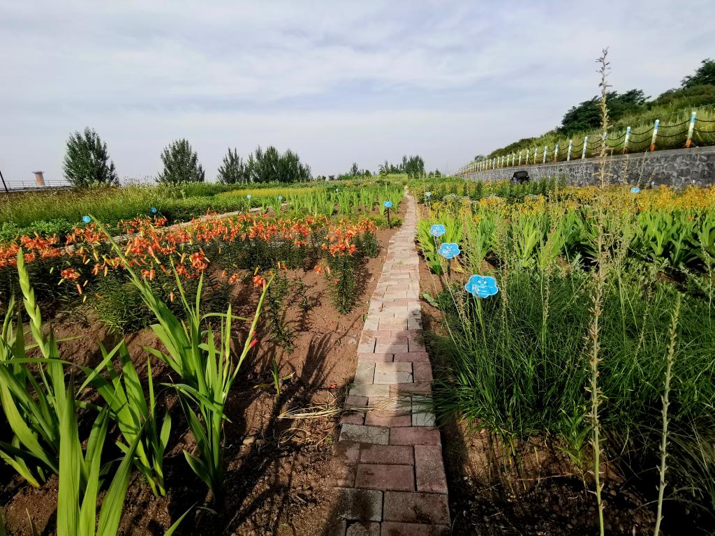 药草园位于新校区西北侧山坡上,面积3000多平米。药草园的建设始于2016年,原是贫瘠的建筑后生土堆积而成。经过中药与民族药学系生药学教研室师生长达5年的努力,已经完成了土壤改良。以野生家植的方式为主、引种栽培药材品种为辅,初步完成了主要药用植物的引种。现药草园里有150多种药用植物,其中培育有长白山区野生药用植物,如:黄芪、苦参、龙胆、徐长卿等,也有典型的栽培药用植物,如:红花、菘蓝(板蓝根)、白芥子、续随子等;有早春药用植物,如:贝母、侧金盏花及款冬等;有多年生宿根植物,如:玉竹、黄精等;有一年生植物,如:红花、续随子等;也有水湿生植物,如:泽泻、甸杜、花蔺等。每个药用植物均挂有带二维码(与中国植物志联网)的名签,以便学生学习。药草园是学生直接感受药用植物不同时期生长状况的重要平台,是大自然的缩影,在这里学生可以进行简单的栽培、采集和解剖植物等实践认知活动。每个季节均能看到有药用植物在开花,如同花园,全校师生可以来此、学习、参观和休闲。