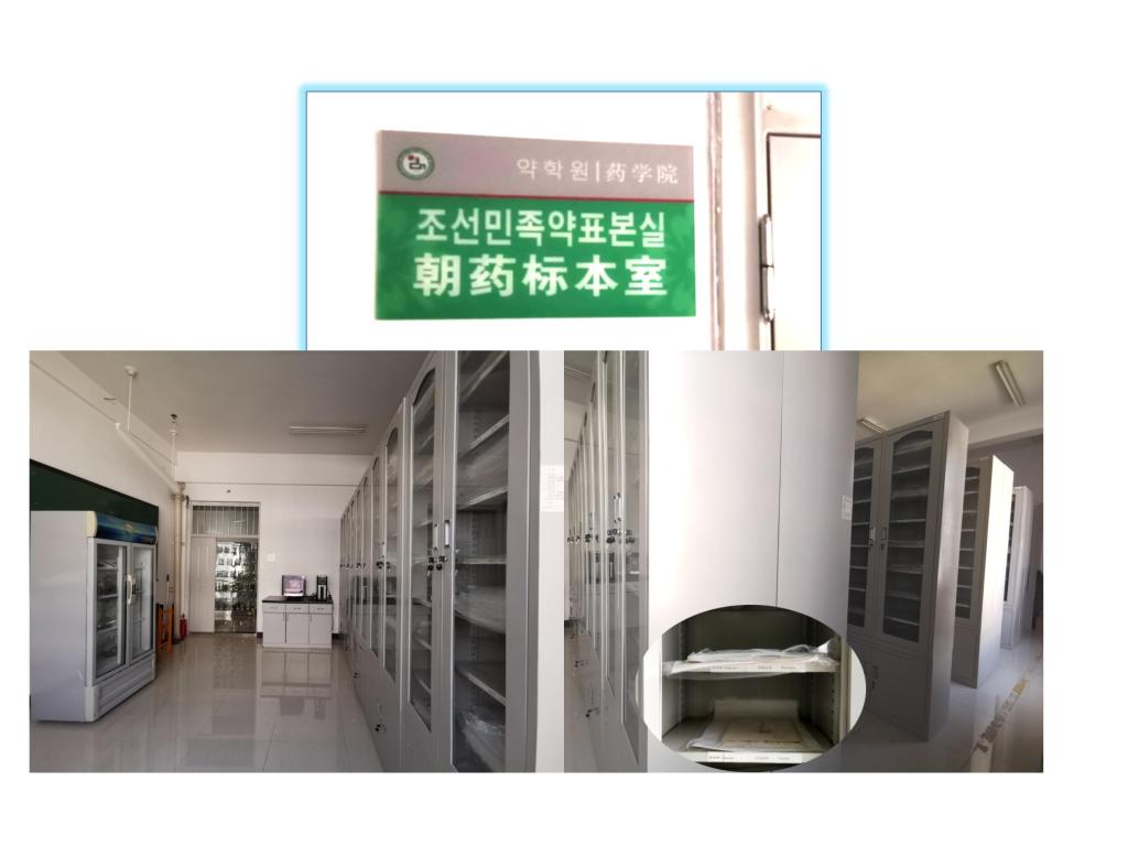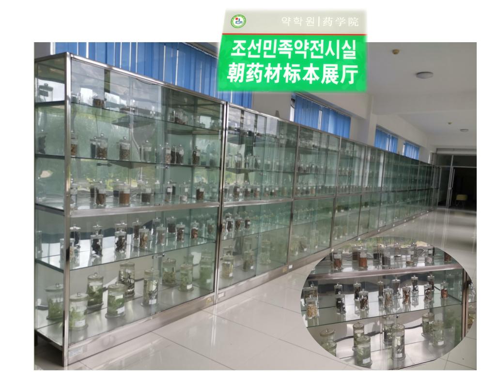 朝药标本馆设于药学楼内,馆内有植物腊叶标本、液浸标本以及饮片标本,腊叶标本按恩格勒系统编排置于标本柜内,液浸标本和饮片标本装在玻璃瓶中置于展示柜中。朝药标本馆里藏有2000多种10000多份腊叶标本,100多种液浸标本,500多种饮片标本。朝药标本馆是进一步研究药用植物的资料库,在此可以了解在野外没有见过的植物标本,体验腊叶标本的制作过程,也可以观察饮片性状。