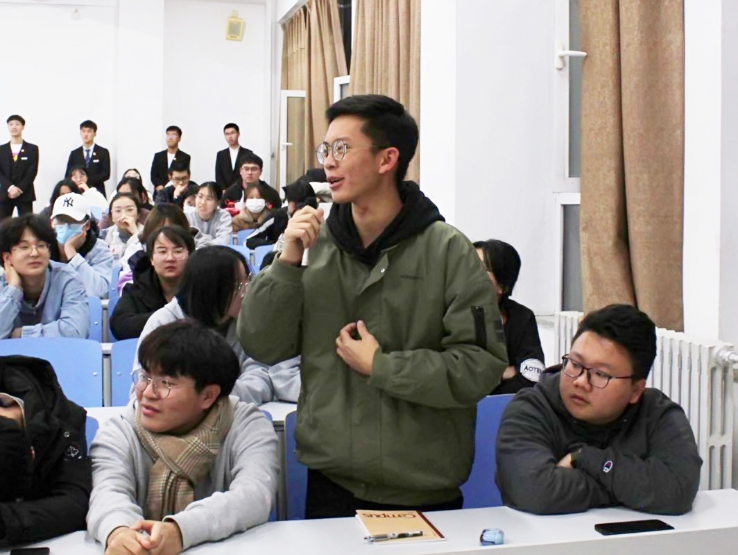 王松泽同学围绕“如何确立学习的主导地位”、“学生的本职工作就是学习”等两方面进行讲述。强调了尽早明确“想要什么”和确立在大学校园生活中“想得到何种锻炼”的重要性,希望同学们要有目标意识,并为之努力,提升执行力,避免没有方向或不努力带来的过度焦虑。