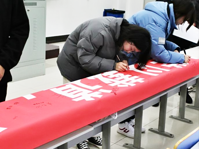 诚信考试承诺书》,并在写有“学以载道,诚信为本”的横幅上签字,以示决心。